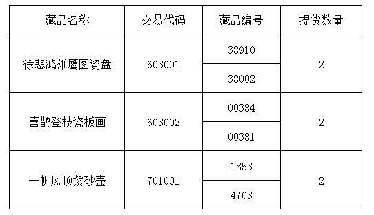 應投資人會員申請,經(jīng)本交易所對申請人信息核實以及出庫藏品復驗后,提貨藏品已完成發(fā)貨,提醒廣大投資者注意盤面藏品數(shù)量變化。提貨藏品信息如下: